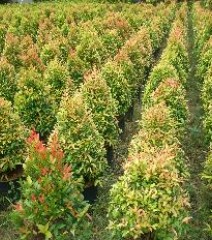 Thân, Tán, Lá: Cây gỗ bụi, nhẵn, phân cành nhánh nhiều. Lá dạng trái xoan dài, tù ở gốc gần như không cuống, đầu thuôn nhọn, nhẵn, lá già xanh bóng lá non có màu đỏ – hồng đến vàng rất đẹp.